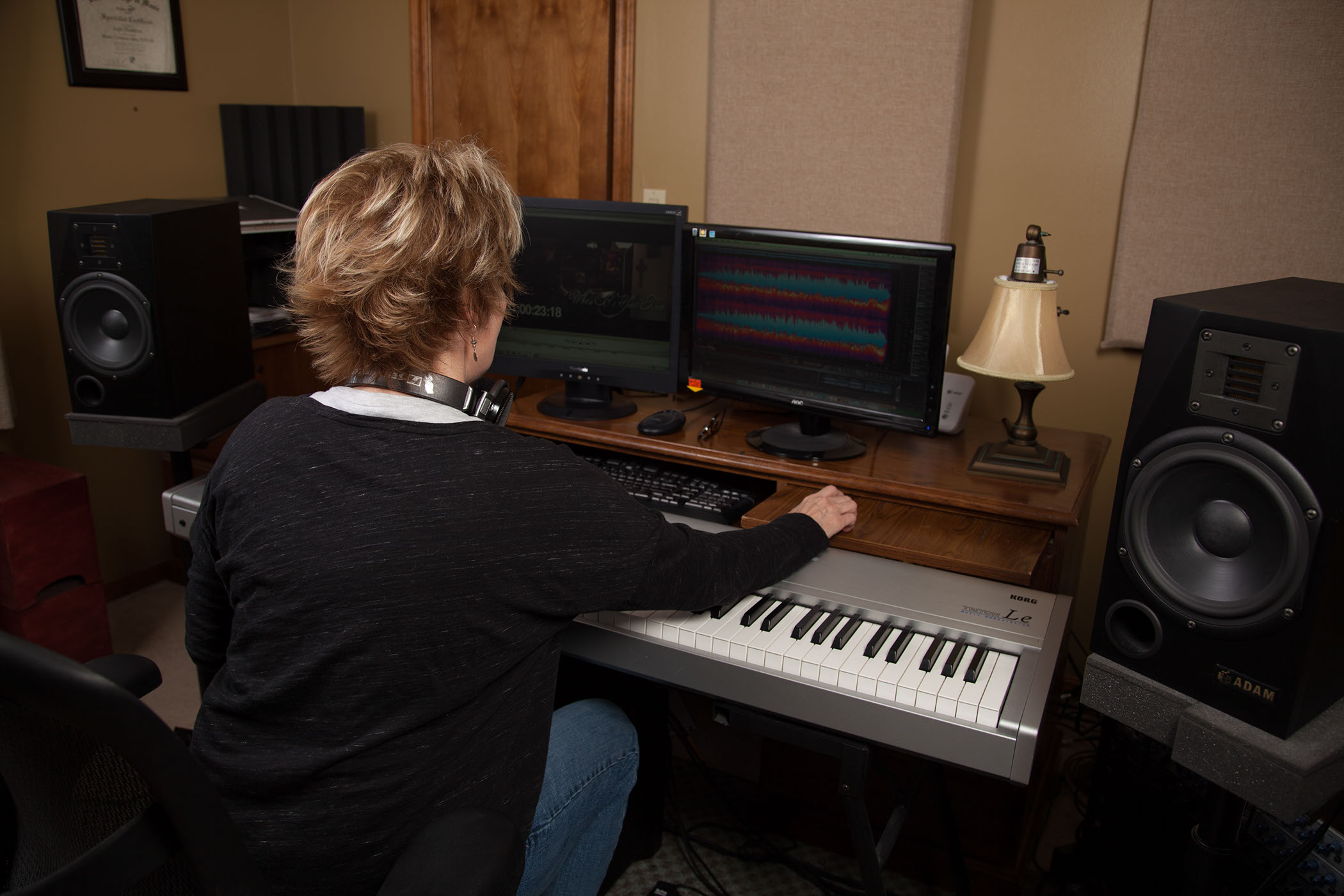 Contact Angie to learn more about rates for music composition and post production services. In general, the cost for music is calculated by the song length (e.g., for a 3 minute orchestral piece to be used as underscore the cost might be $100/ minute or $300), how the song will be used (underscore, music in scene, source music, feature, etc.,), and the complexity of the project. Songs (music with lyrics) usually cost more than instrumental pieces. Live instruments usually cost more than sampled instruments, etc. Post production services are also based upon level of editing detail and length of the project. Seeing the project and hearing the audio (without sound effects) will be necessary prior to giving an estimate.